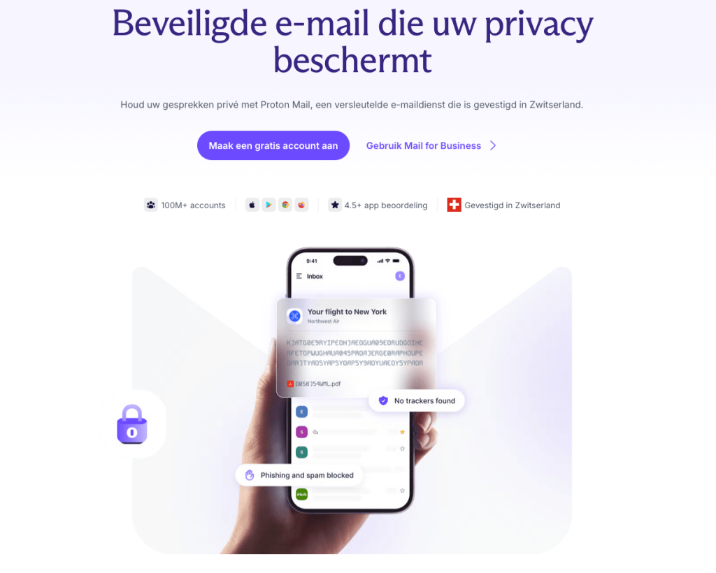 Fijn is ook dat je gratis een Proton Mail-adres kunt aanmaken. Zo kun je het platform rustig uitproberen zonder direct te betalen. Ideaal om te kijken of het bij je past.