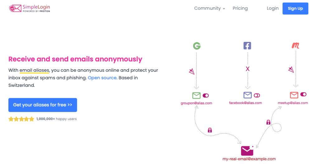 Een van de meest handige extra’s is SimpleLogin, dat inbegrepen is bij Proton Unlimited. Hiermee kun je eenvoudig e-mailaliassen aanmaken.